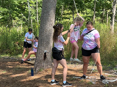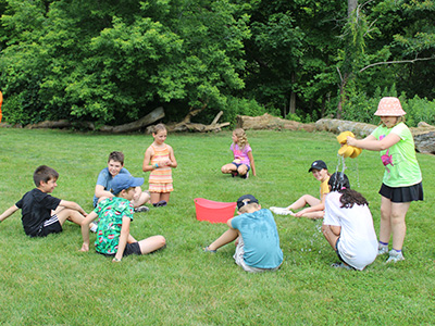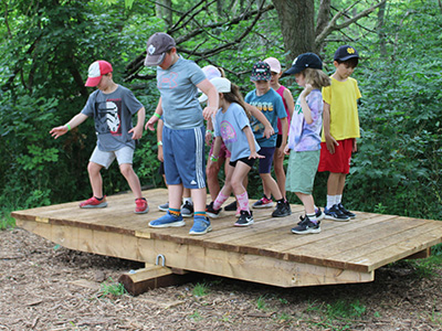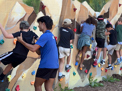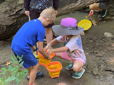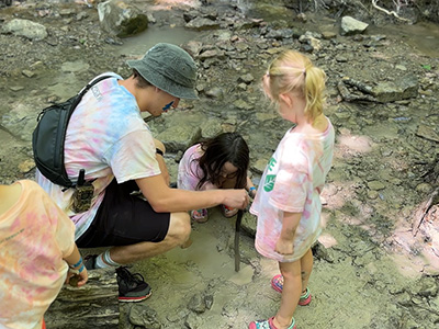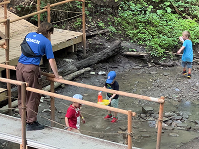 Activities include exploring the ravine, scavenger hunts, bouldering (rock climbing), low ropes, panning for gems, nature-themed crafts, tie dye, water games & more.